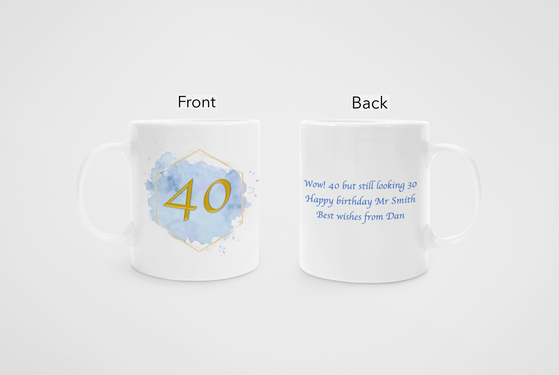 Option to personalise 40th birthday mug.