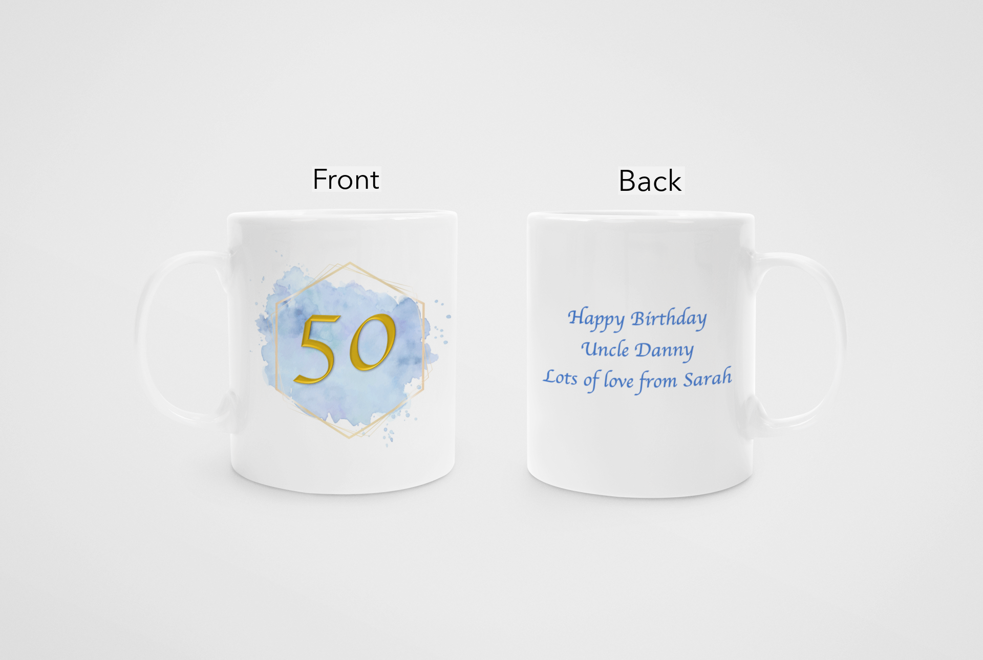 Option to personalise 50th birthday mug.