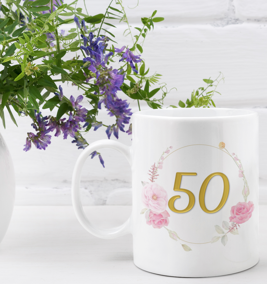Option to personalise 50th birthday mug.