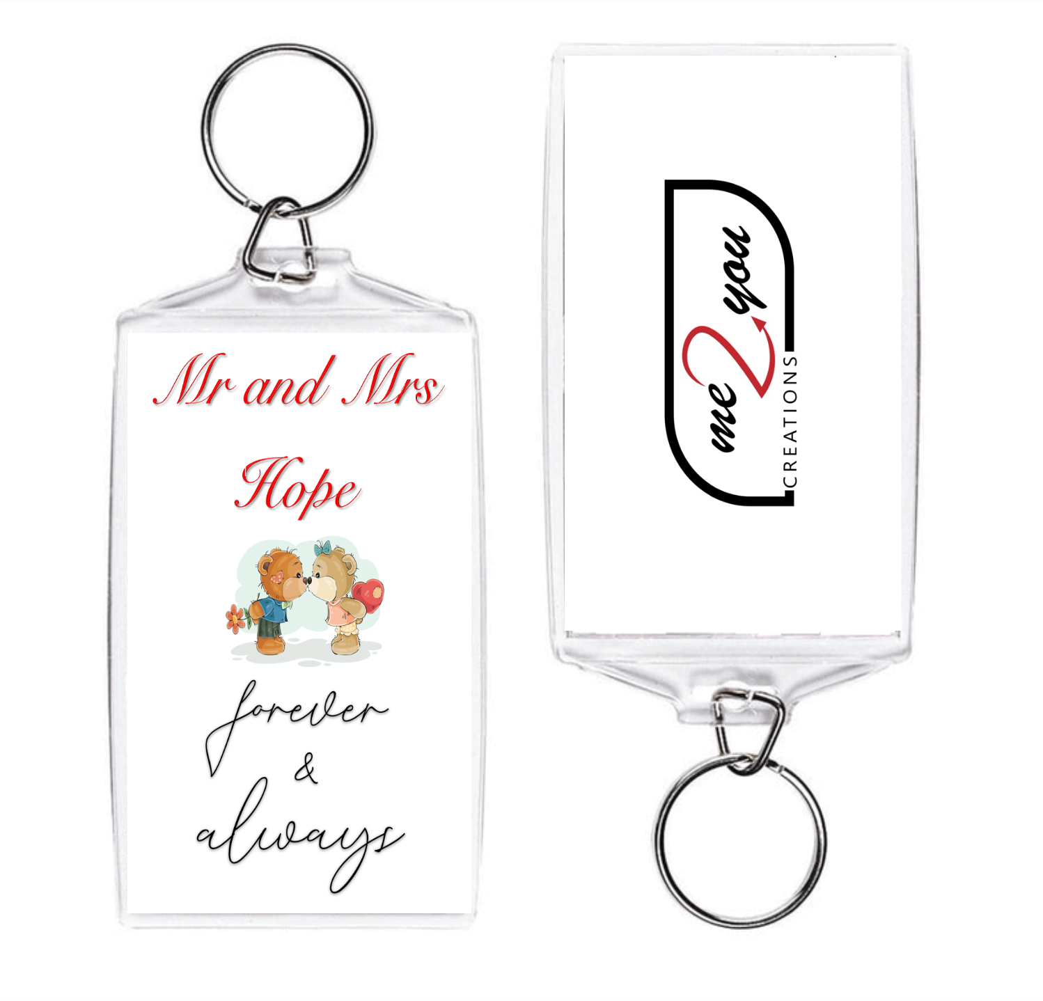 *Keyrings are printed double sided with your chosen print, our logo is not printed on one of the sides as shown on the picture. The picture is for illustration purposes only.
