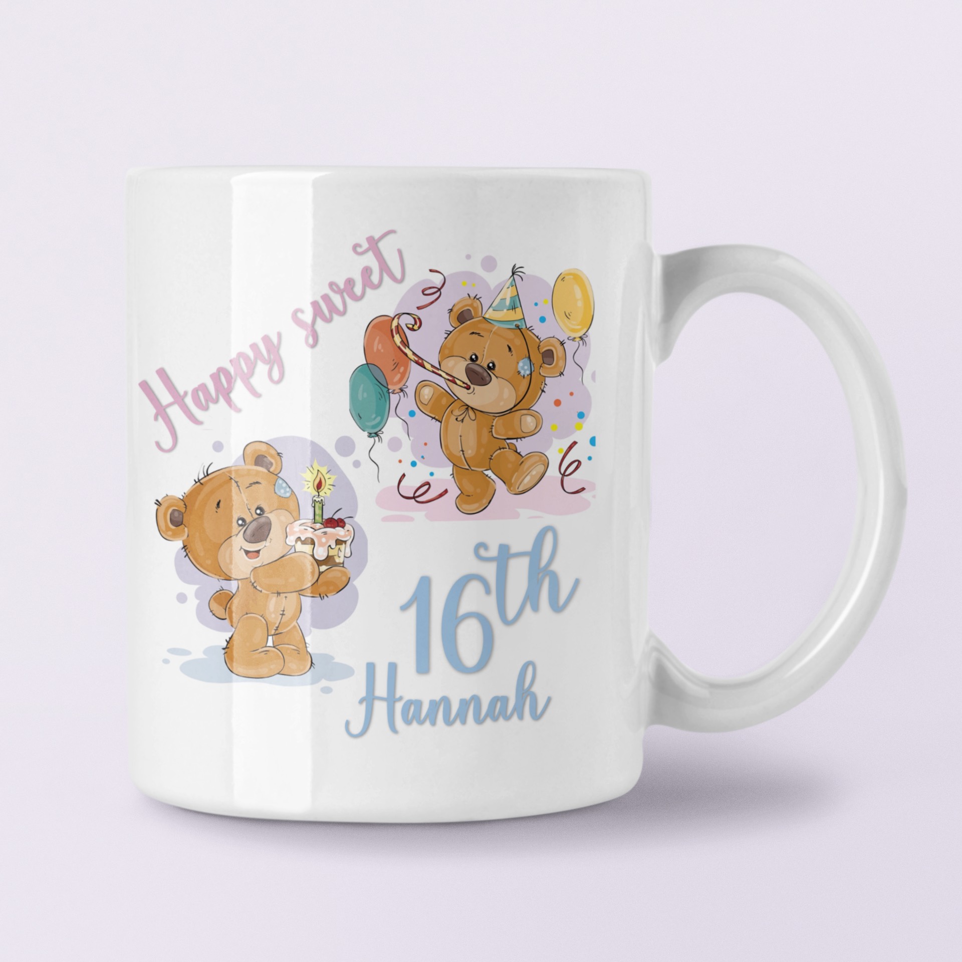 Personalised sweet 16th mug for girls.